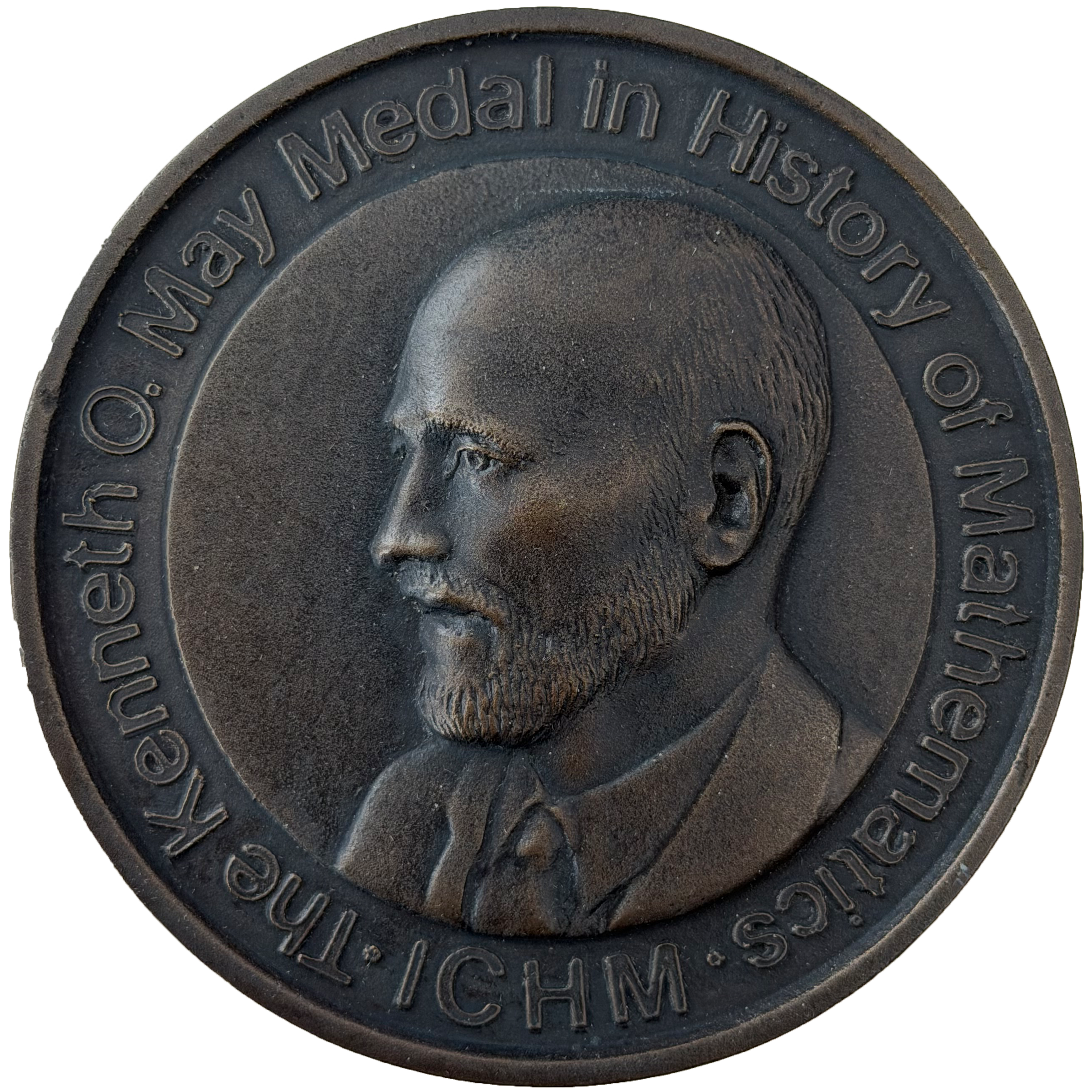 Following May's death in 1977, the ICHM sought a suitable means by which to honor the memory of this remarkably selfless contributor to the international community of historians of mathematics. The result was the Kenneth O. May Prize given for outstanding contributions to the history of mathematics and first awarded in 1989 to Dirk J. Struik and Adolf P. Yushkevich on the occasion of the 18th International Congress of History of Science in Hamburg and Munich. In 1993, the ICHM commissioned the Canadian sculptor, Salius Jaskus, to design in bronze the Kenneth O. May Medal as part of the Kenneth O. May Prize.